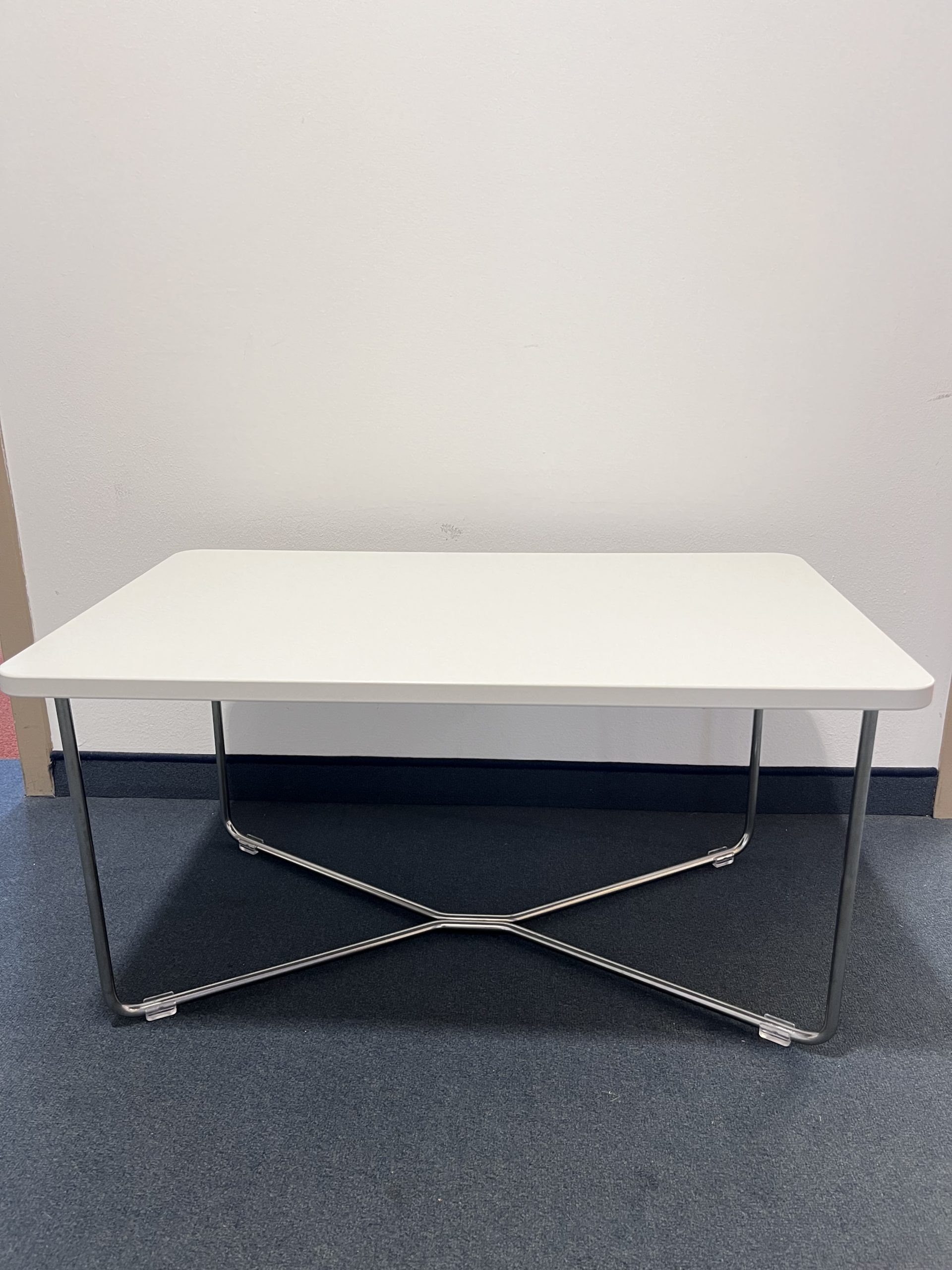 Das Tischgestell ist Chrom sowie in weiß verfügbar.